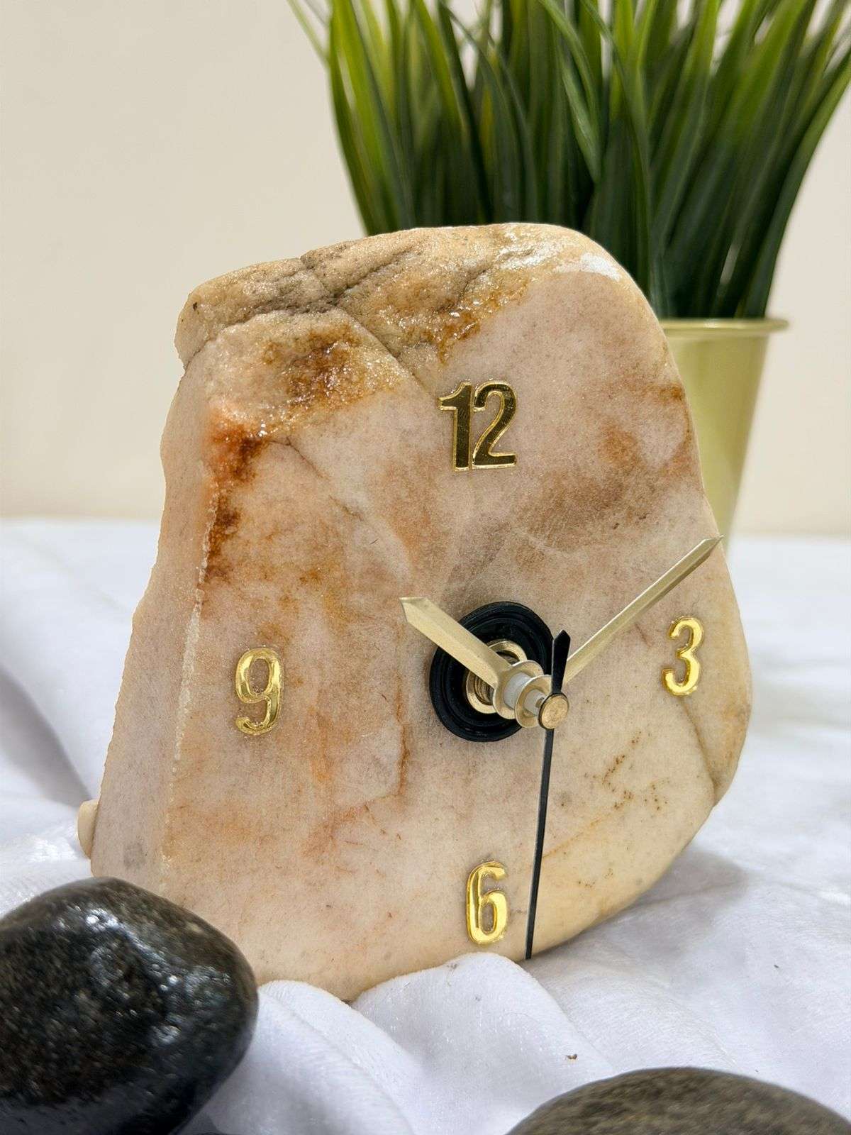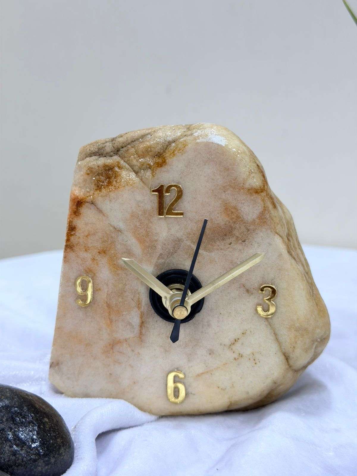 Elevate your space with the Marble & Gold Riverstone Clock, a stunning fusion of raw organic form and refined luxury. Designed to mimic a weathered stone smoothed by mountain currents, this timepiece brings a grounded yet sophisticated energy to your home.